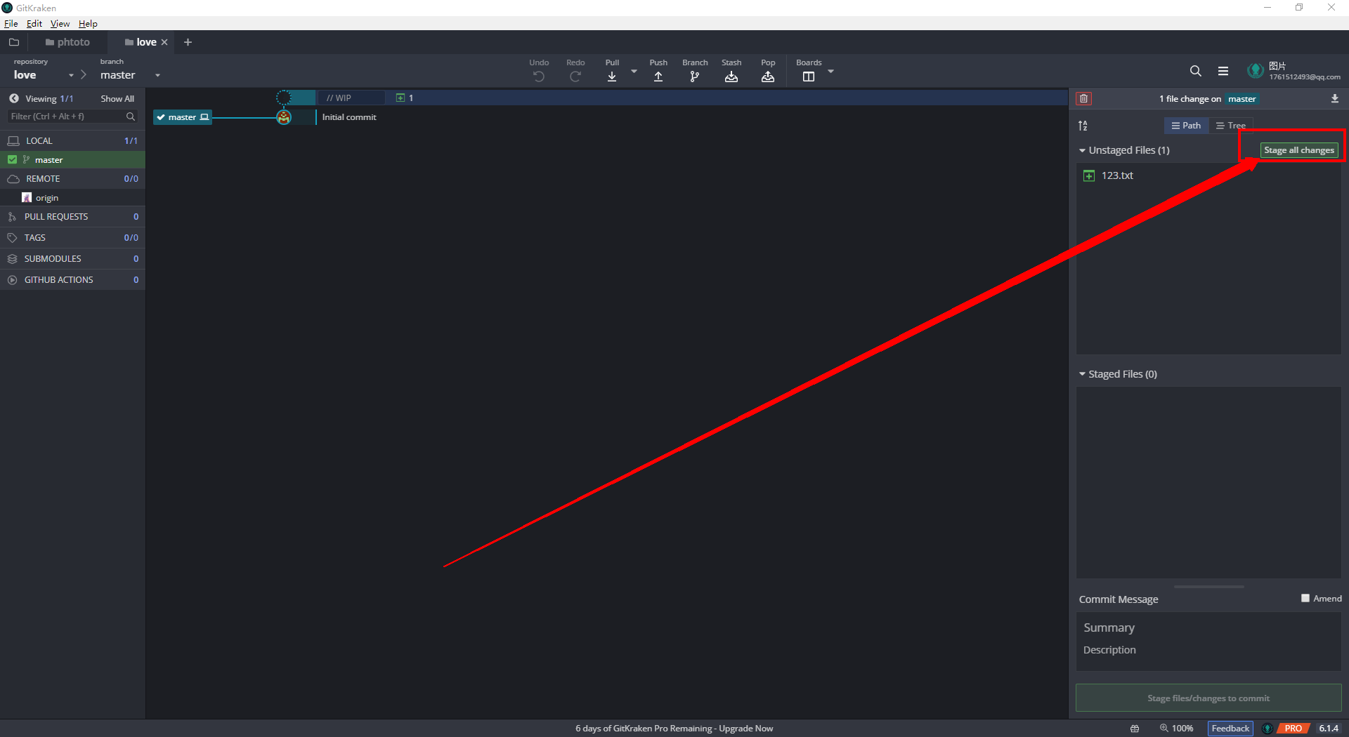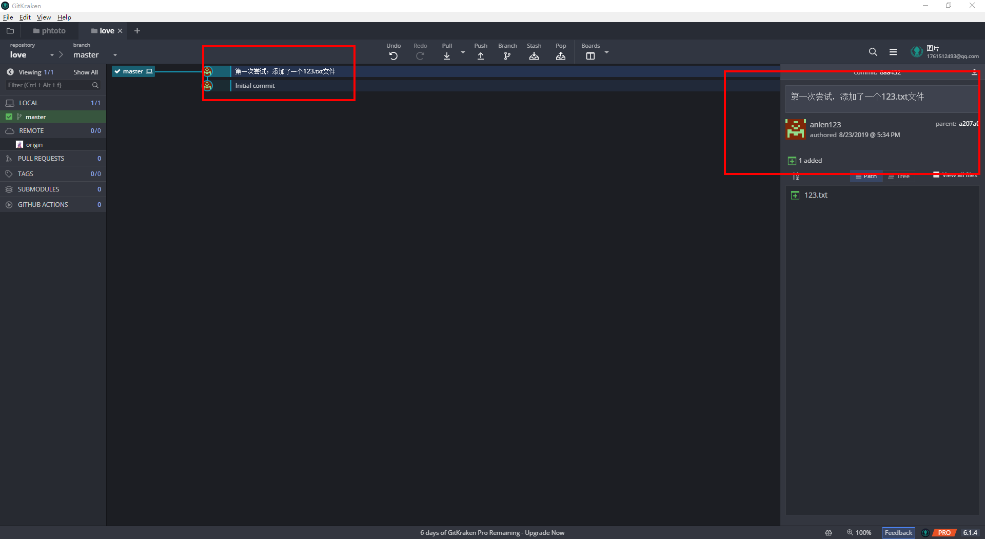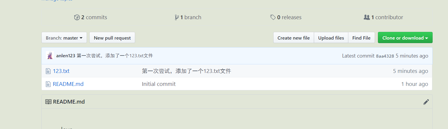我这里添加了一个123.txt然后里面的内容是未闻丶死讯,然后我们提交一下,点击右上角的view