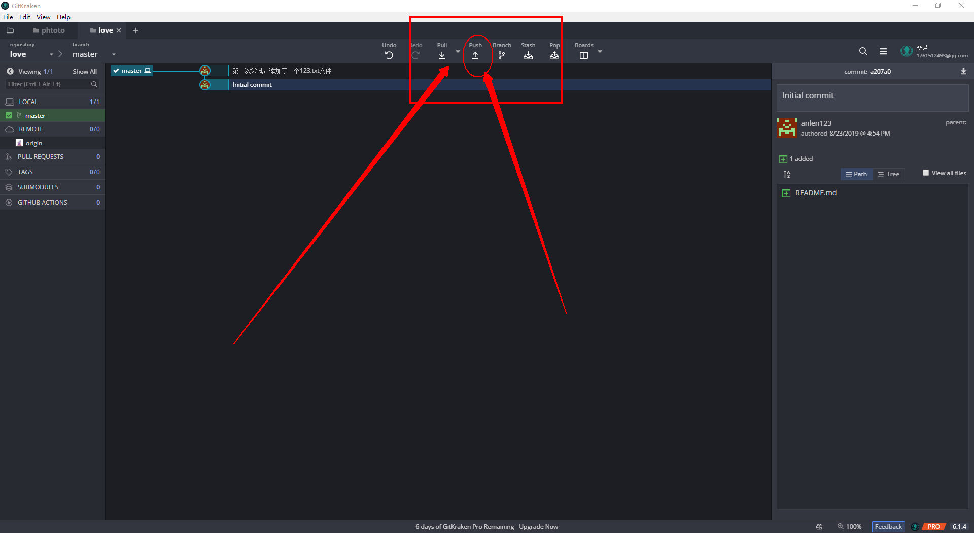最后一步了,需要同步到远程仓库,点击上面的push即可,如图:
