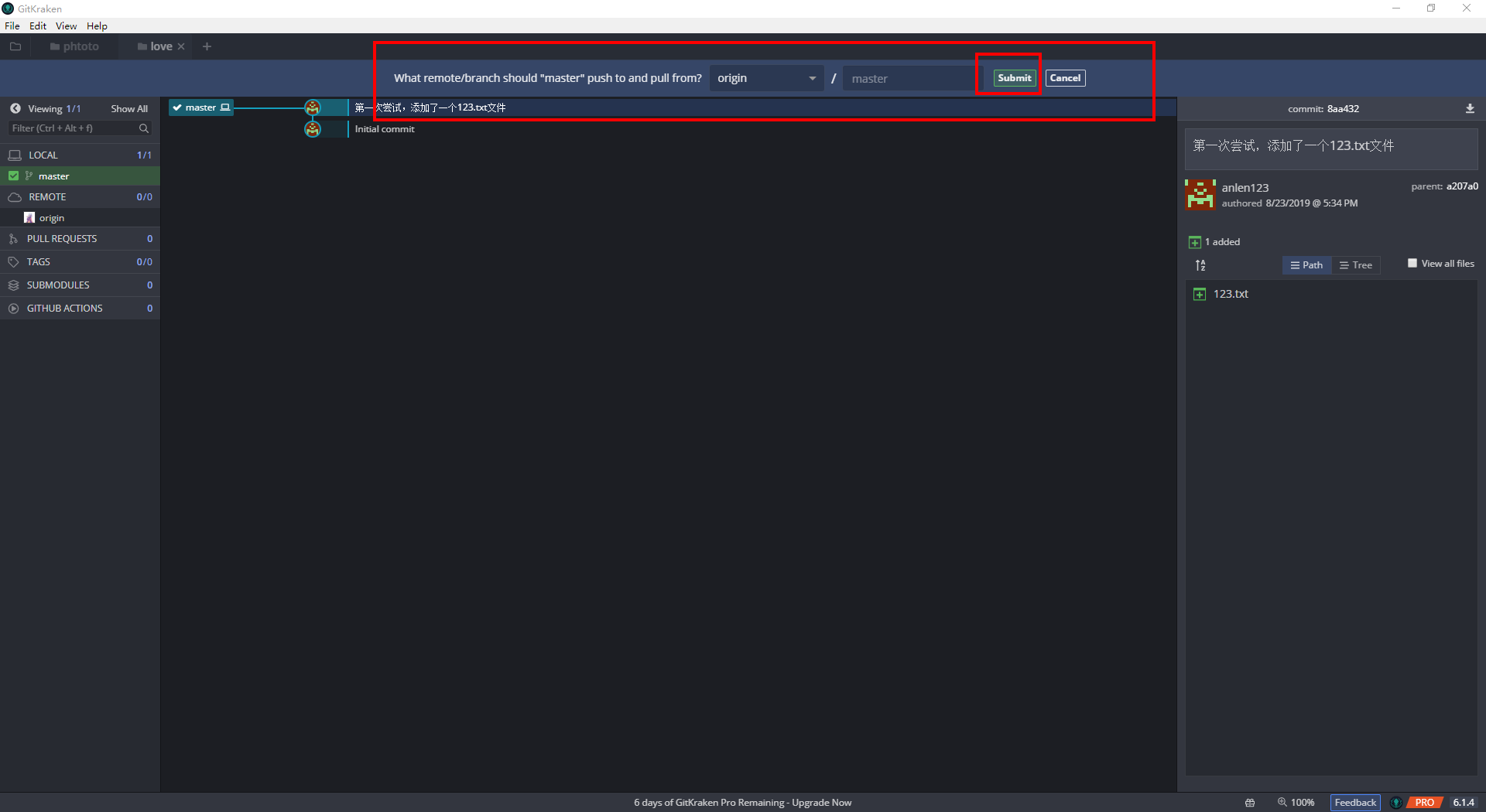 第一次会问你,到哪个分支,额,你一个人用的话,基本用不着这个,直接提交就行了。