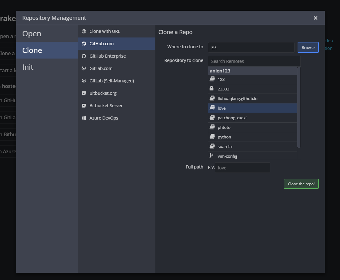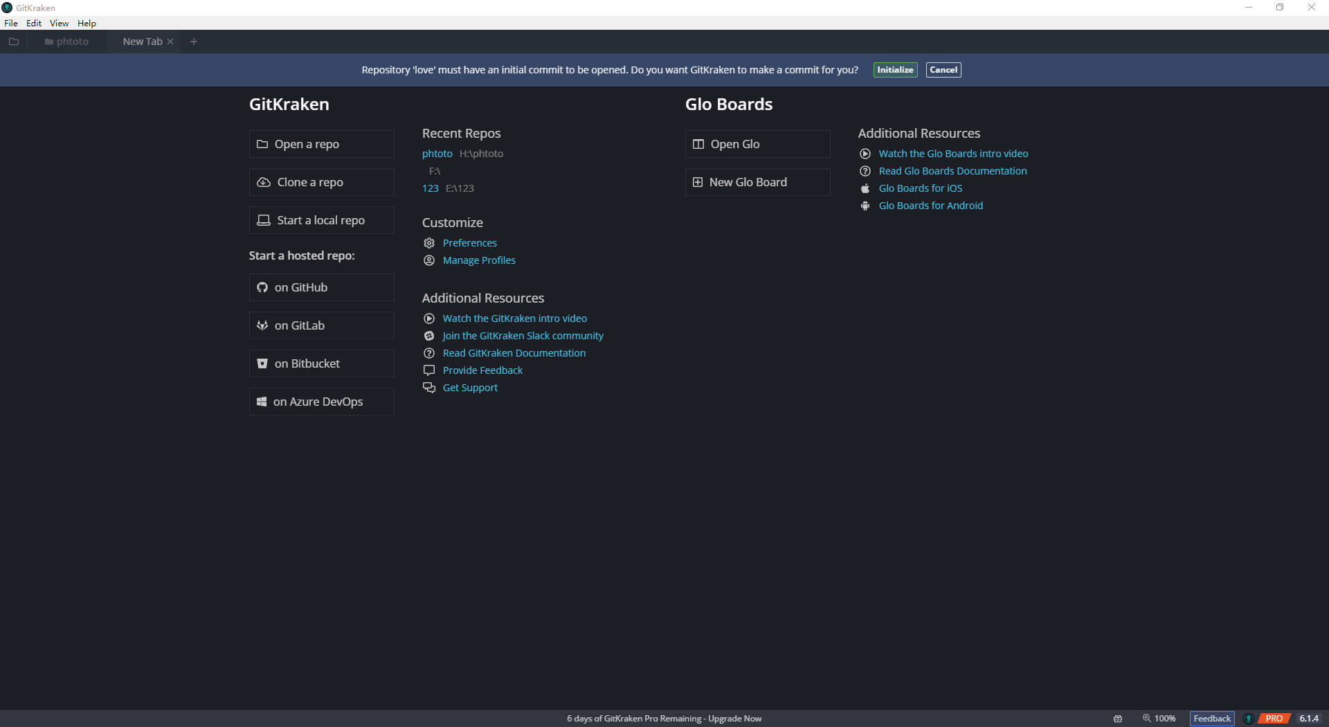你可以在GitKraken这个软件上创建,当然,到网页上创建仓库也可以,